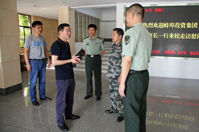 軍民魚(yú)水深,濃濃雙擁情?!鞍艘弧苯ㄜ姽澕磳⒌絹?lái)之際,帶著(zhù)蚌投集團全體員工的深情厚誼,7月25日下午,集團黨委書(shū)記、董事長(cháng)、總經(jīng)理汪支邊一行,看望慰問(wèn)解放軍汽車(chē)士官學(xué)校官兵,向部隊官兵致以節日的祝福,并贈送防暑降溫用品,以實(shí)際行動(dòng)愛(ài)國擁軍,共話(huà)軍企團結魚(yú)水情。
