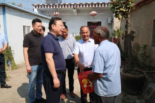 9月19日上午,蚌投集團黨委副書(shū)記、總經(jīng)理陳建功,黨委委員、副總經(jīng)理陶志剛帶隊赴鄉村振興幫扶村淮上區周郢村,開(kāi)展鄉村振興調研暨中秋佳節走訪(fǎng)慰問(wèn)活動(dòng),集團辦公室、市農業(yè)科技投資公司相關(guān)負責同志陪同參加。