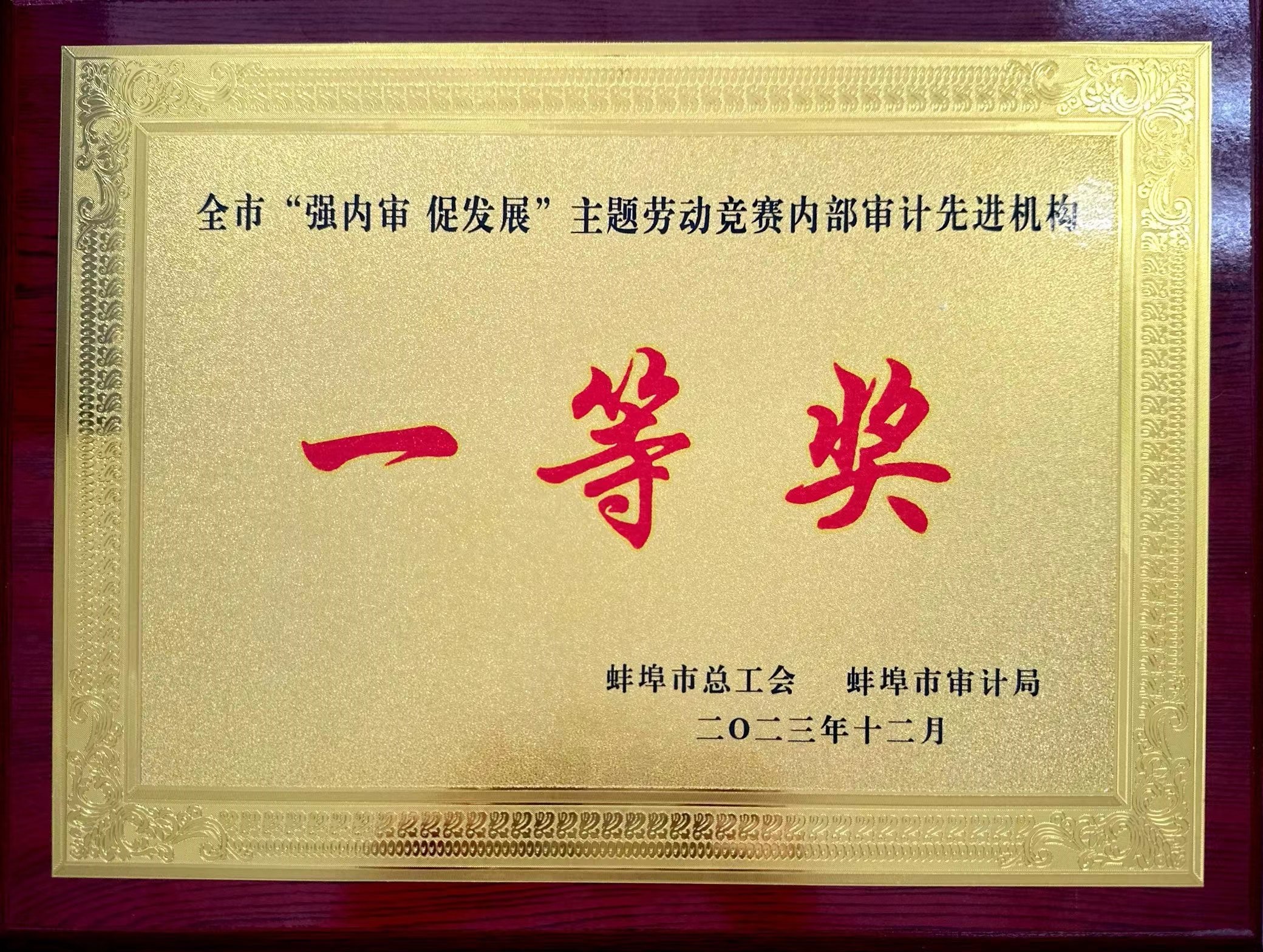 2023年12月26日,蚌投集團在市審計局、市總工會(huì )聯(lián)合舉辦的全市“強內審 促發(fā)展”主題勞動(dòng)競賽中榮獲全市“強內審...
