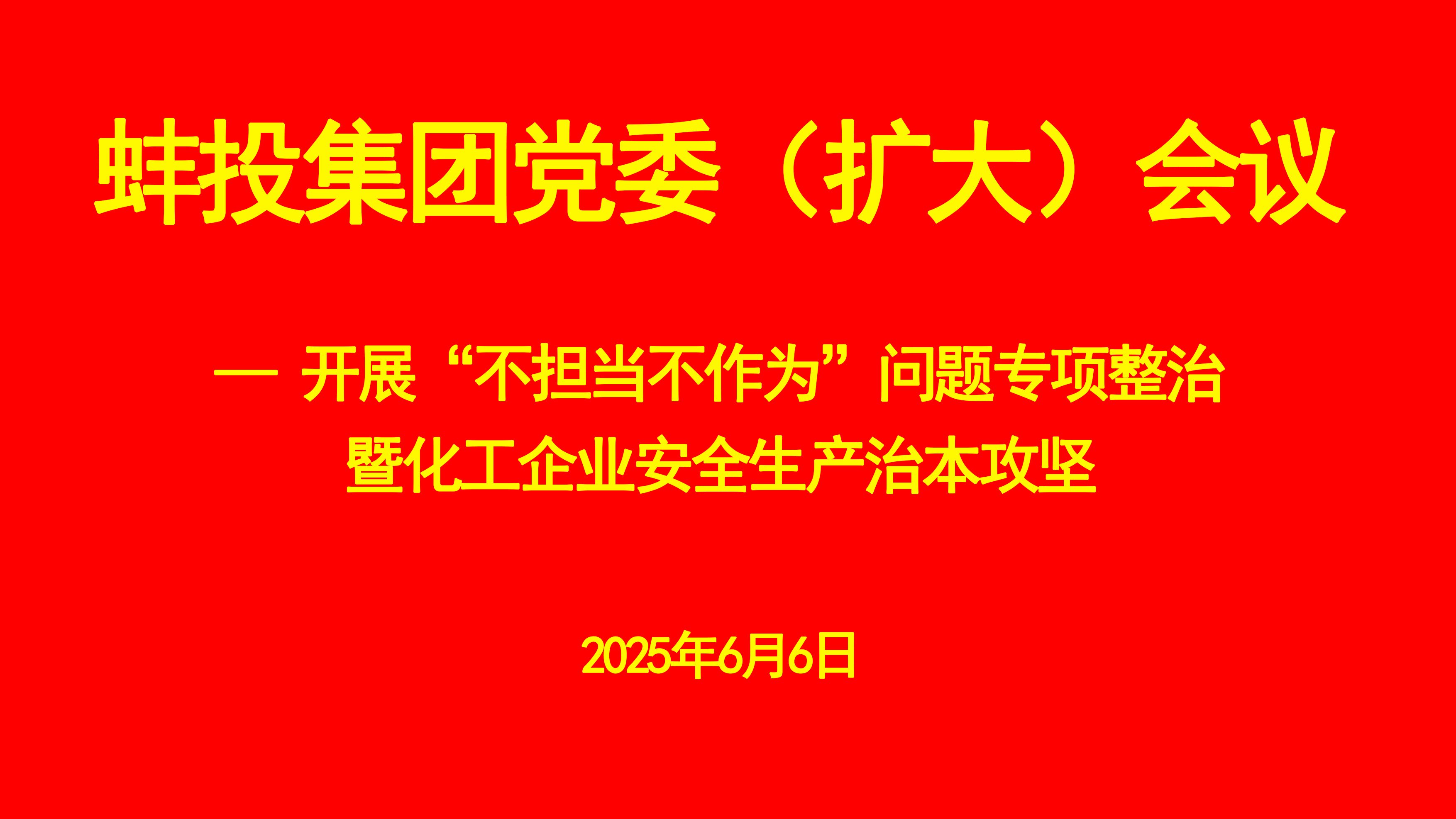 6月6日上午,蚌投集團在淮上區沫河口工業(yè)園天潤化工會(huì )議室召開(kāi)黨委(擴大)會(huì )議,專(zhuān)題研究部署開(kāi)展“不擔當不作為...