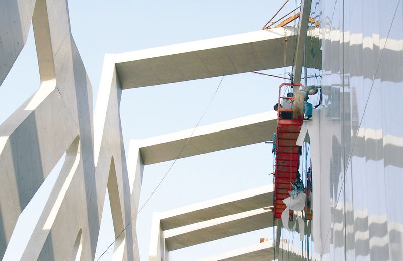日前,施工人員在加緊安裝龍湖體育館外墻的幻彩鋁塑板。龍湖體育館的外觀(guān)造型采用透空大型群雕主題墻,既抽象又具體,既內斂又張揚,通過(guò)構件所產(chǎn)生的陰影投映在外墻面上,形成一個(gè)光影變化豐富的三維空間,動(dòng)感十足,給人以無(wú)限遐想。體育館建成后將成為我市標志性建筑,提升了城市品位