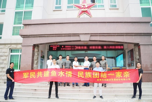 為慶祝中國人民解放軍建軍92周年,2019年8月1日下午,蚌埠投資集團項目管理有限公司、蚌埠天河建設發(fā)展股份有限公司、蚌埠投資集團房管經(jīng)營(yíng)有限公司、蚌埠農業(yè)科技投資有限公司一行20余人共赴空軍某部開(kāi)展“八一”建軍節共建座談會(huì )暨雙擁慰問(wèn)活動(dòng)。